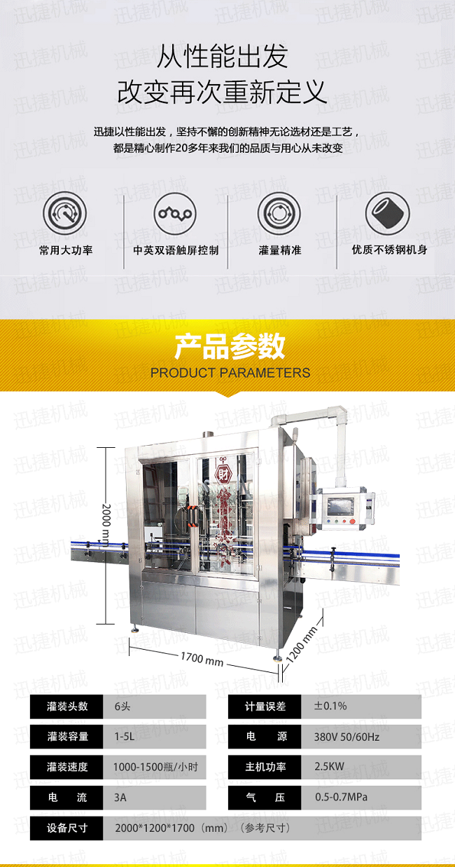4、灌裝量調整方便,不需更換零配件,即可適用于不同規格的瓶子,調整方便,適應性強;