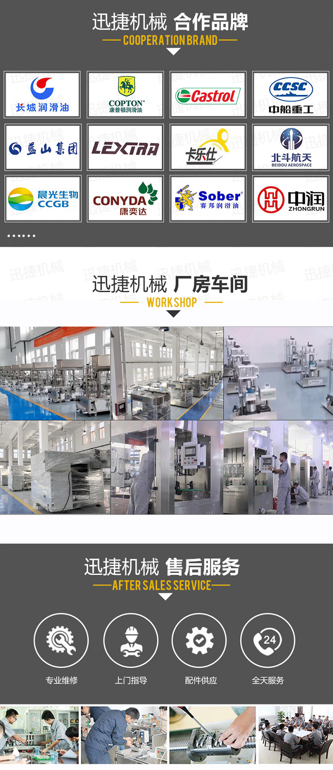 該機是我司很新研制的潤滑油定量灌裝機,設備集光、電、氣于一體,由PLC配合人機界面(觸摸屏)控制,從進瓶、定位、灌裝、出瓶等動作均全自動完成。采用直流式灌裝,與物料接觸部分均采用出色不銹鋼和食品級材料制成,符合食品衛生要求;自動化程度高,性能穩定,生產速度快,灌裝準確,操作簡單、調整方便,適應性強等特點。