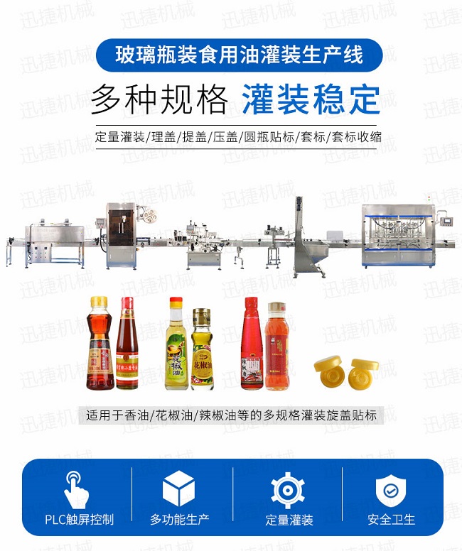 該系列灌裝機(jī)采用容積式計(jì)量灌裝原理,適用于各種規(guī)(100ml-1000ml)的南瓜籽油、榛子油、牡丹籽油、芝麻油、核桃油、山茶油、亞麻籽油、棉籽油、橄欖油、大豆油、玉米油、菜籽油等食用油灌裝。設(shè)備采用伺服驅(qū)動(dòng)活塞計(jì)量,保證了 1‰的灌裝精度,在保證灌裝精度的同時(shí),提高了 20%-35%灌裝速度,操作簡單,維護(hù)方便,節(jié)省人工成本,生產(chǎn)效率更高。